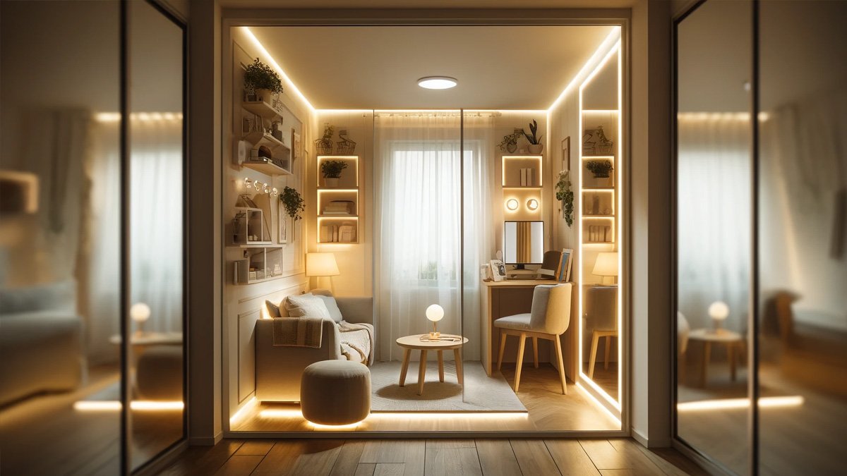 A tecnologia moderna oferece soluções de iluminação inteligente que podem ser controladas por aplicativos ou assistentes de voz. Estas soluções permitem ajustar a intensidade, cor e até mesmo programar cenários de iluminação, o que pode ajudar a modificar a percepção do espaço dependendo do uso ou do momento do dia. A iluminação inteligente também é ideal para criar efeitos específicos que podem fazer um espaço pequeno parecer maior e mais acolhedor.